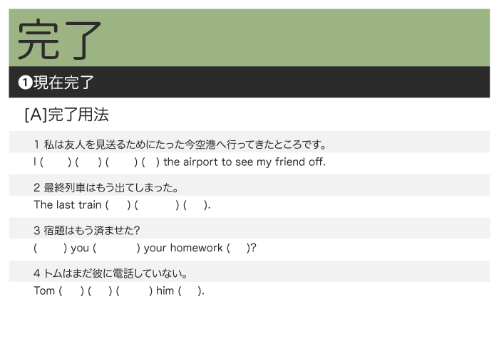 時制 完了 状態動詞 受動態 不定詞 動名詞 分詞 比較 関係詞 仮定法